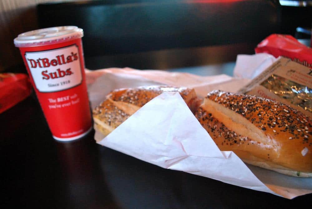 Dibella’s wurde von italienischen Einwanderern in Rochester gegründet, die Zutaten aus Italien importierten, bevor sie ins Sandwich-Geschäft einstiegen. Dieses Familienunternehmen legt Wert auf frisches Brot, das zweimal täglich gebacken wird. Ich bin voreingenommen, wenn ich sage, dass das Alles-Brot das beste ist, aber es ist so. Sie haben sowohl vegetarische als auch fleischhaltige Optionen (der Pate ist köstlich).